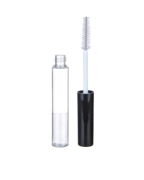 Plastična bočica u kompletu sa crnim čepom i četkicom za maskaru.