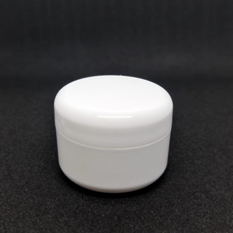 Kozmetička plastična kutijica sa duplim dnom, bijelim poklopcem i međupoklopcem.