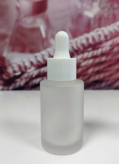 Staklena kozmetička bočica, matirano staklo sa glatkom bijelom pipetom.