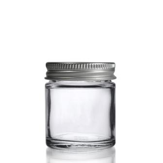 Prozirno staklo, sa sivim aluminijskim poklopcem.