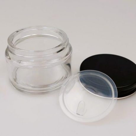 Prozirno staklo, u kompletu s crnim plastičnim poklopcem i prozirnim međupoklopcem.